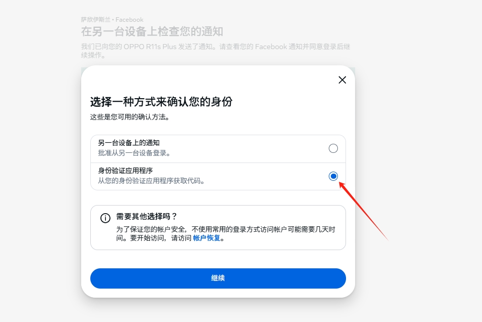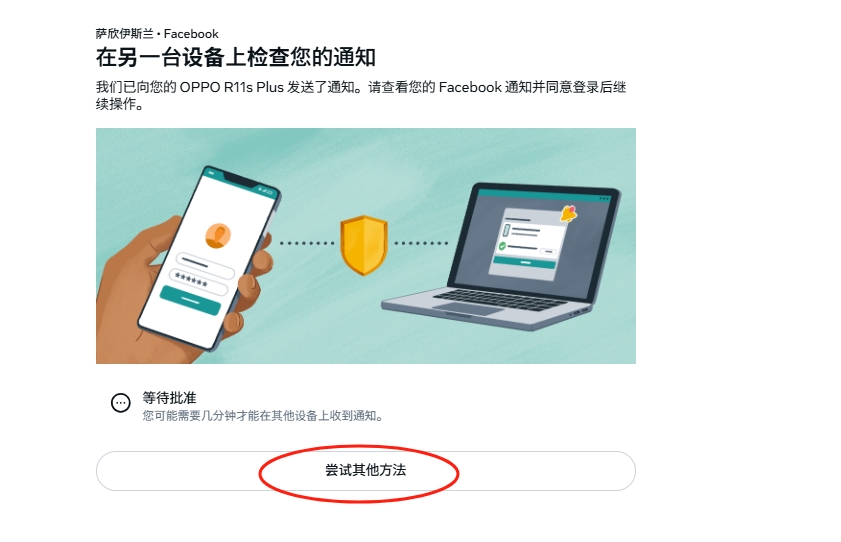 2,这里他提示你用别的设备验证的话 你就选择其它方法