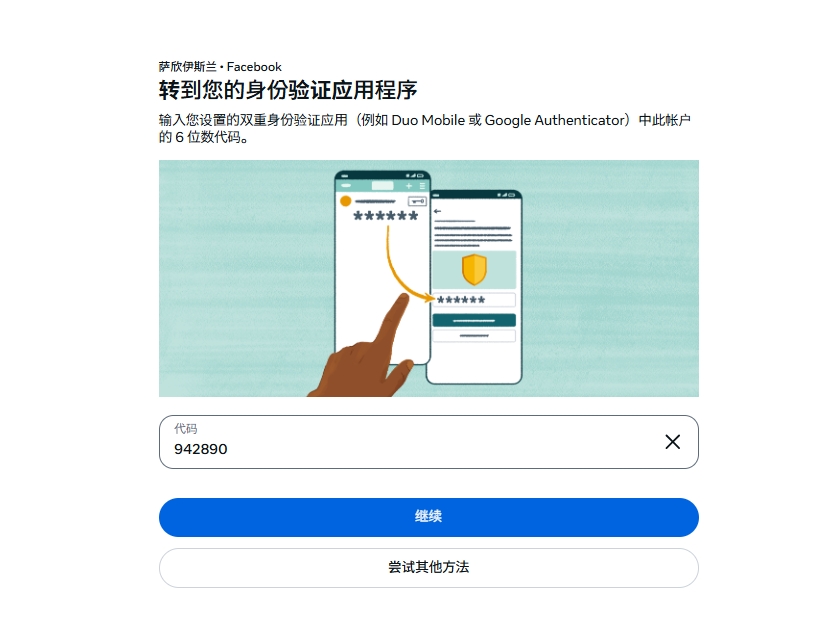 5,获取到的6位数验证码 填入FB里登录即可,如果显示错误,请看验证码时间是否过期
